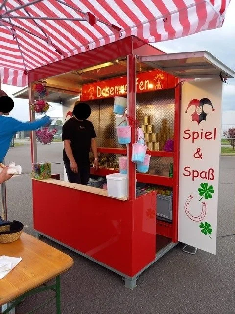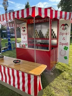 Unsere Ballwerfer-Hütte animiert Jung & Alt zum Spiel & Spaß! Jeder Spieler bekommt drei Bälle, um möglichst viele Dosen zum Fallen zu bringen.