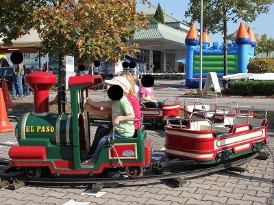 Unsere charmante “El-Paso” Eisenbahn bietet genügend Platz für bis zu 14 Kinder gleichzeitig!